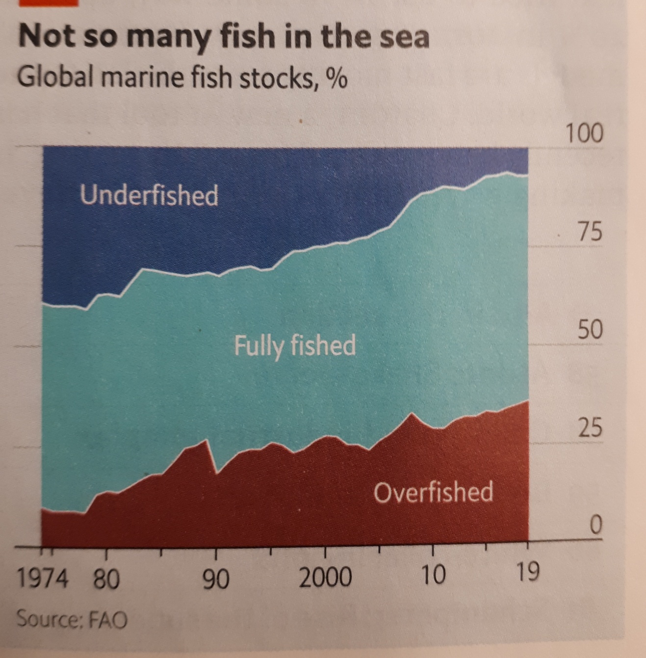바다에서 물고기 숫자와 어종이 사라지고 있는 현실.