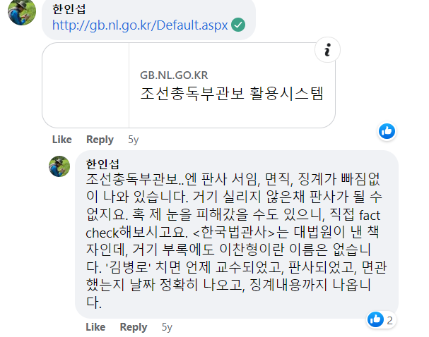 -<친일인명사전>, <조선총독부관보>에도 이찬형이란 이름의 판사는 없음.