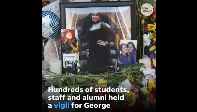 Hundreds of students, staff and alumni held a vigil for George at a student center that night. Natalie Bennett, director of the school's Women's Leadership and Resource Center, recited a poem in George's memory. Bennett said that the center had recently held a discussion event on women of color and violence and that, at the vigil, one student revealed that George been part of making that discussion happen.