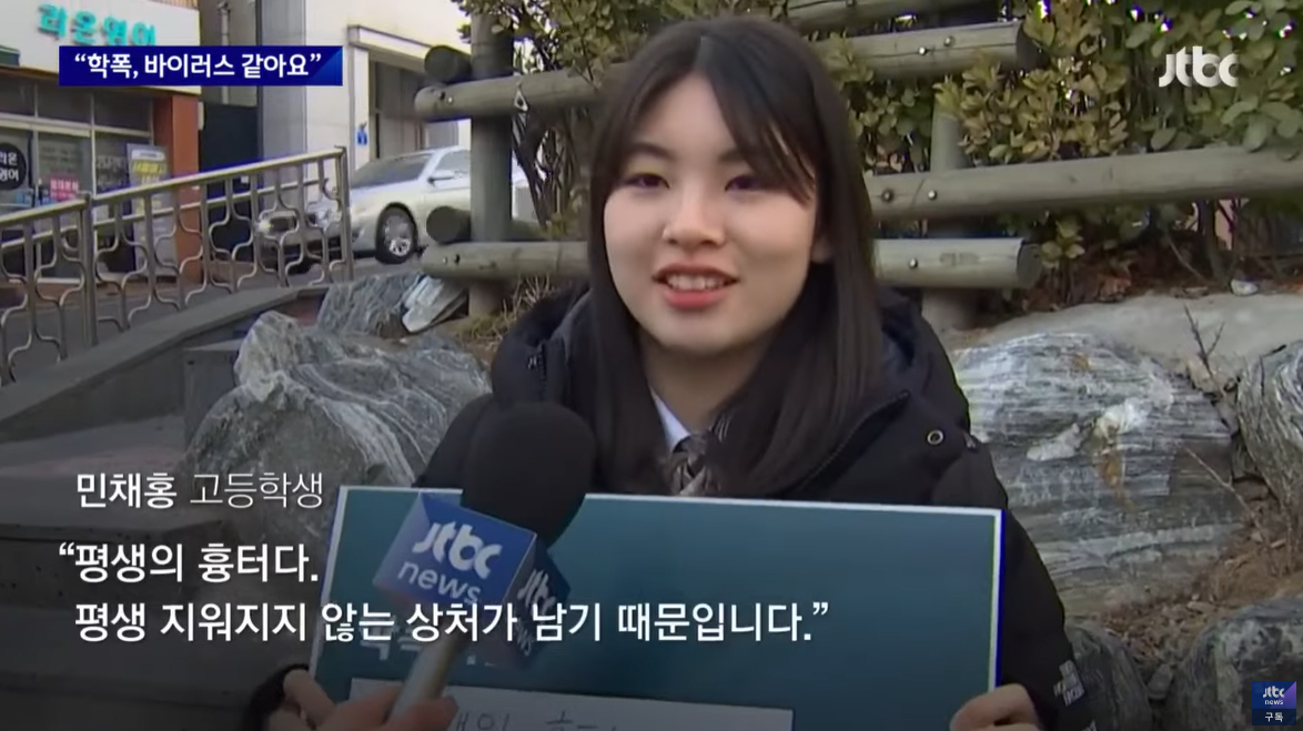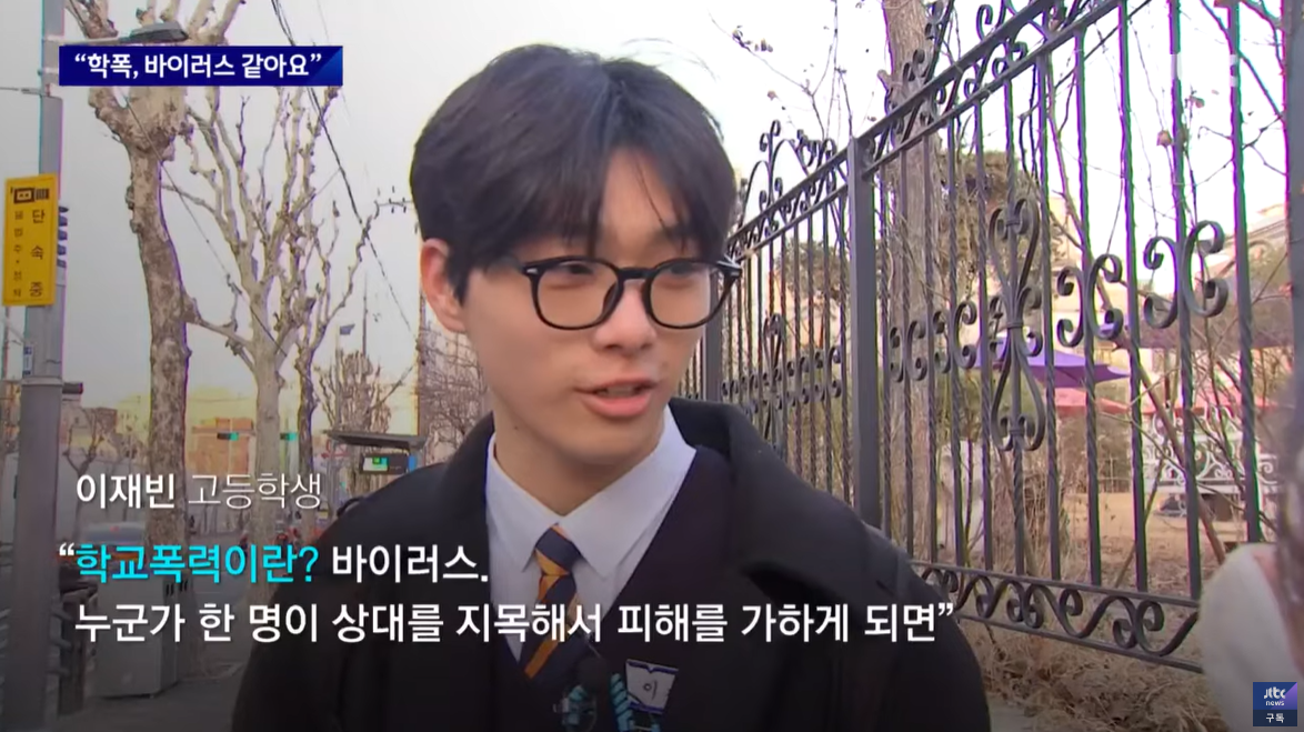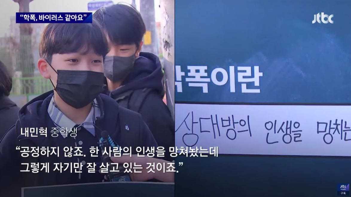 학폭 문제를 제일 잘 아는 건 아마 학생들일 겁니다. 그래서 JTBC가 새 학년 등굣길 학생들에게 학폭에 대한 생각을 물었습니다. 학생들을 학폭을 바이러스라고 했고, 또 불공정이라고 했습니다.