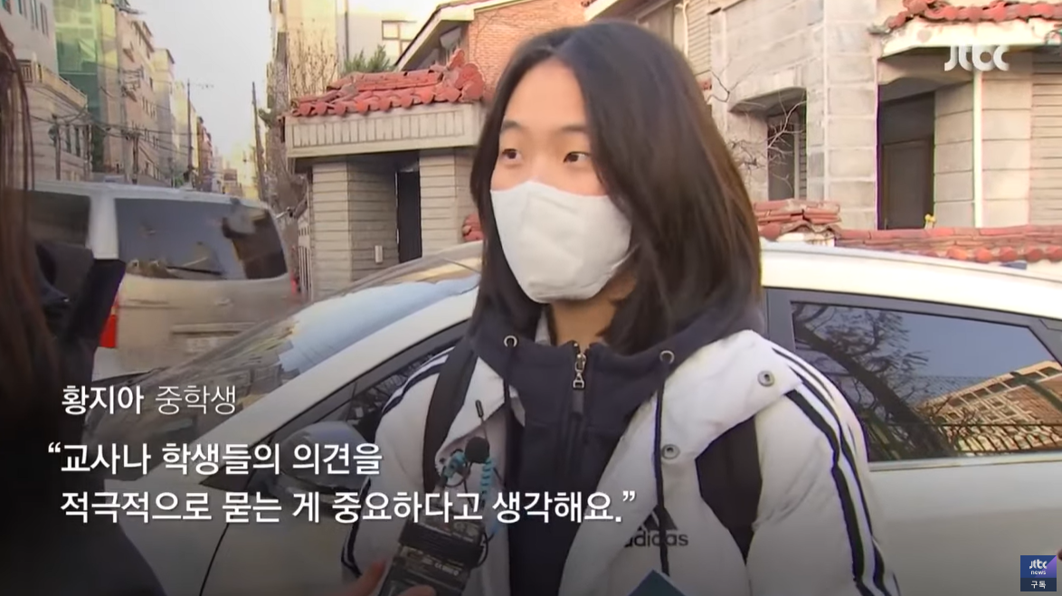 [황지아/중학생: 교사나 학생들의 의견을 적극적으로 묻는 게 중요하다고 생각해요.]