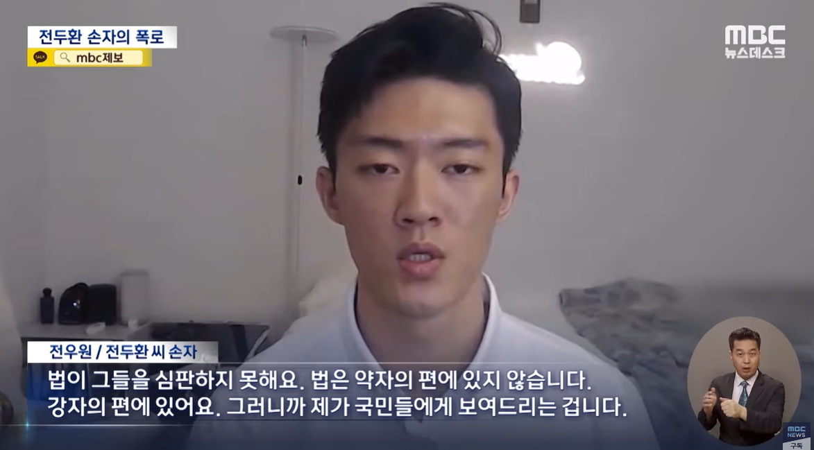 전우원씨가 왜 전두환 범죄 집단의 죄를 폭로하게 되었는가, 그 동기는 '법이 약자의 편이 아니기 때문에' 직접 언론과 국민에게 자신의 생각을 밝히게 되었다는 점이다.