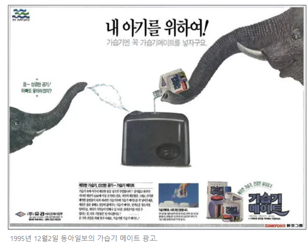1995년 12월2일 동아일보의 가습기 메이트 광고.