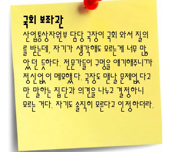 산업부는 전적으로 기업 편에 섰다. 화평법 제정 논의가 오고갈 때 산업부는 가습기 살균제 사태 방지 대책으로 ‘완제품 전체의 물질관리’보다 ‘생활화학제품 위주의 관리 강화’가 우선돼야 한다는 의견을 냈다. 산업부 의견이 수용돼 화평법에서 유해화학물질 함유 제품의 신고를 의무화하는 내용이 빠졌다. 김신범 노동환경건강연구소 화학물질센터 실장은 “산업부는 품질경영 및 공산품안전관리법을 통해 가습기 살균제를 제대로 관리하지 못했으면서도 완제품에 대한 관리 부분을 타 부처(환경부)에 줄 수 없다는 태도를 고수했다”고 말했다.