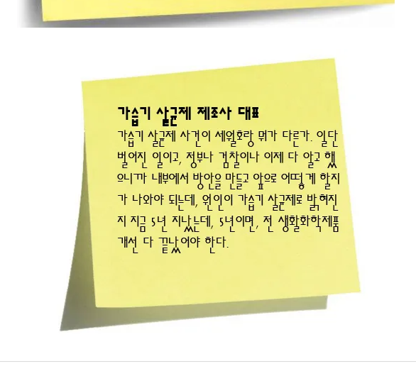 김기범 = 생활화학제품 기획을 착안한 기폭제는 가습기 살균제 사건이었다. 가해기업 일부는 구속됐고, 국회 국정조사특위가 꾸려지고 청문회도 열렸지만 여전히 제대로 책임지는 사람은 없다.