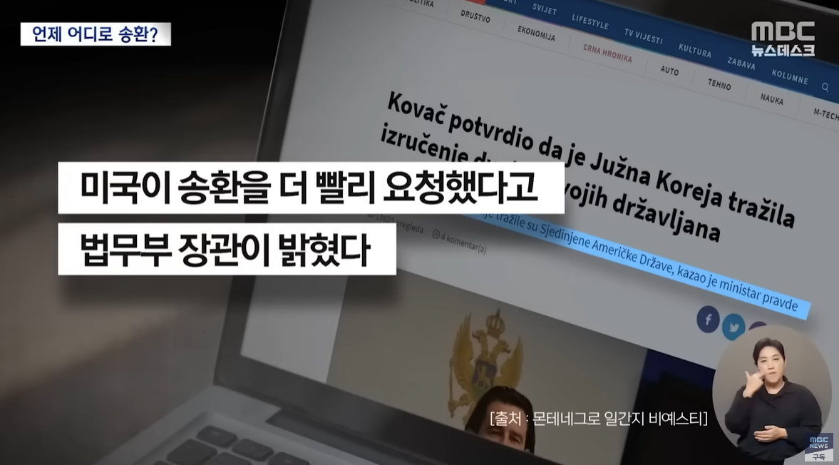 하지만, 몬테네그로 당국은 위조여권 사용 범죄부터 처벌하겠다는 입장이라, 신병 인도까지 긴 시간이 걸릴 가능성도