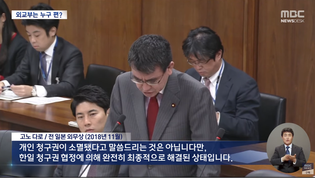 "개인 청구권이 소멸됐다고 말씀드리는 것은 아닙니다만, 한일 청구권 협정에 의해 완전히 최종적으로 해결된 상태입니다."