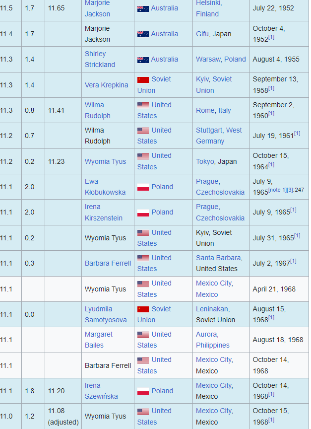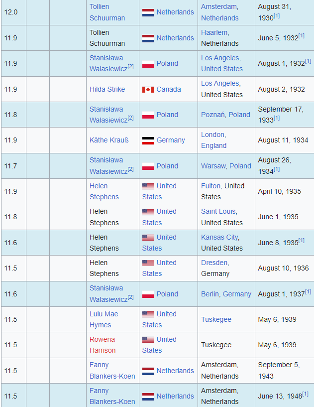 여자 100미터 달리기 기록