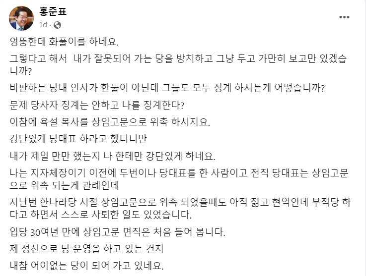 그래서 처음부터 나는 징계 제명 하라고 한겁니다.