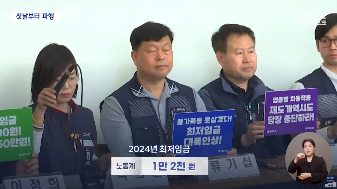 내년도 최저 임금을 결정하기 위한 협상이 시작부터 파행을 겪었습니다.
