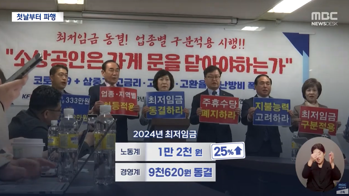 "지금 지급이 가능한 금액이 아닙니다. 소상공인의 지불능력을 기준으로 최저임금 동결이 꼭 필요합니다."