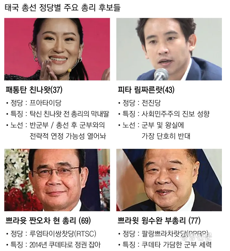 애초 이번 선거에서는 탁신 가문의 부활 여부에 관심이 쏠렸지만, 피타 전진당 대표가 돌풍의 주인공이 됐다. 피타 대표는 기업인 출신의 엘리트 정치인이다.