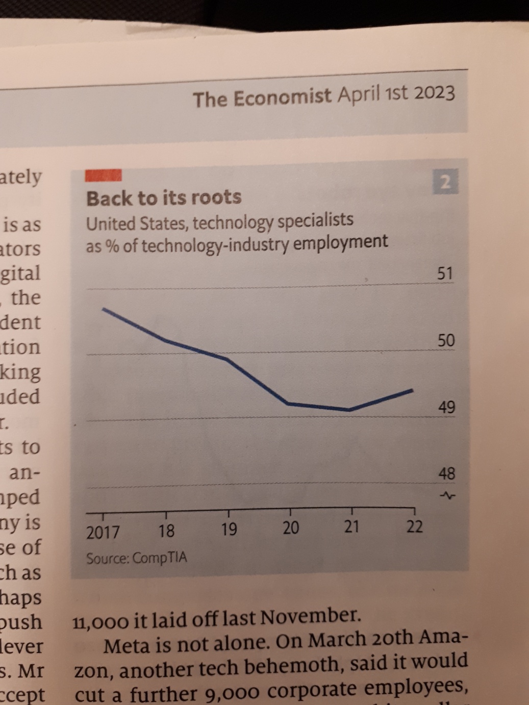 이코노미스트 전망... 위 해고자들이 AI 산업과 연관된 새로운 산업 역군이 될 수도 있다고 낙관적 전망.