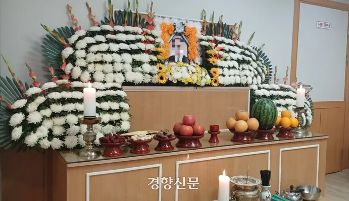 지난 10일 오후 전남 목포시의 한 병원 장례식장. 분향소에는 사망 이후 6일째 장례를 치르지 못하고 있는 A씨(43)의 영정이 놓여있었다. 조문객이 없어 썰렁한 분향소는 유족과 노동단체 관계자 몇이 자리를 지키고 있었다.