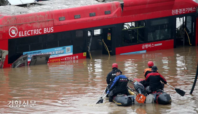 대한민국 기후 철학은 뒤죽박죽이다. 매뉴얼과 현장이 따로 놀고, 예방보다 복구에만 돈 퍼붓는 헛껍데기 방재다. 서울시가 1년간 사들인 ‘침수 우려’ 반지하 주택은 0.3%에 그쳤다. 올 10월 EU 탄소국경세가 선보이는데, 이 정부는 2030년까지 할 탄소감축량 75%를 임기 뒤로 미뤘다. 기후위기를 미래로 보다가, 곧 닥칠 돈으로 알다가, 생명을 위협받는 나라가 됐다.