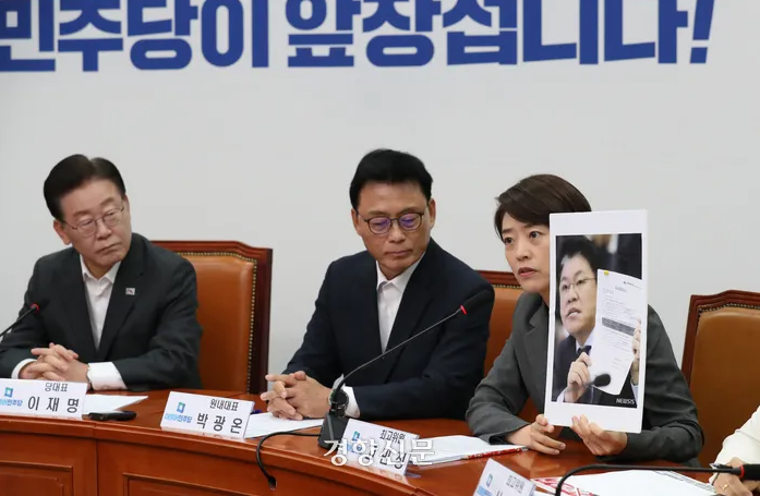 서영교 민주당 최고위원은 이날 최고위원회의에서 윤 대통령의 이 발언을 거론하며 “모두 다 허위사실이다. 이에 대해서 철저히 수사해야 한다”고 말했다. 야당은 대검찰청이 2020년 3월 윤석열 당시 검찰총장의 장모 사건 대응 문건을 작성한 것도 문제 삼았다. 서 최고위원은 문건 관련 보도를 언급하며 “검찰총장 시절 어떤 이권카르텔이 있었는지 윤 대통령 일가의 게이트 사건을 철저하게 이원석 검찰총장은 수사하고, 한동훈 법무부 장관은 수사를 지휘하라”고 말했다.