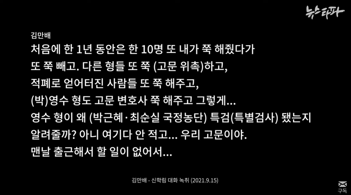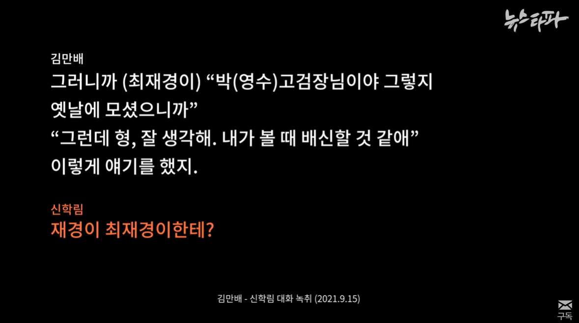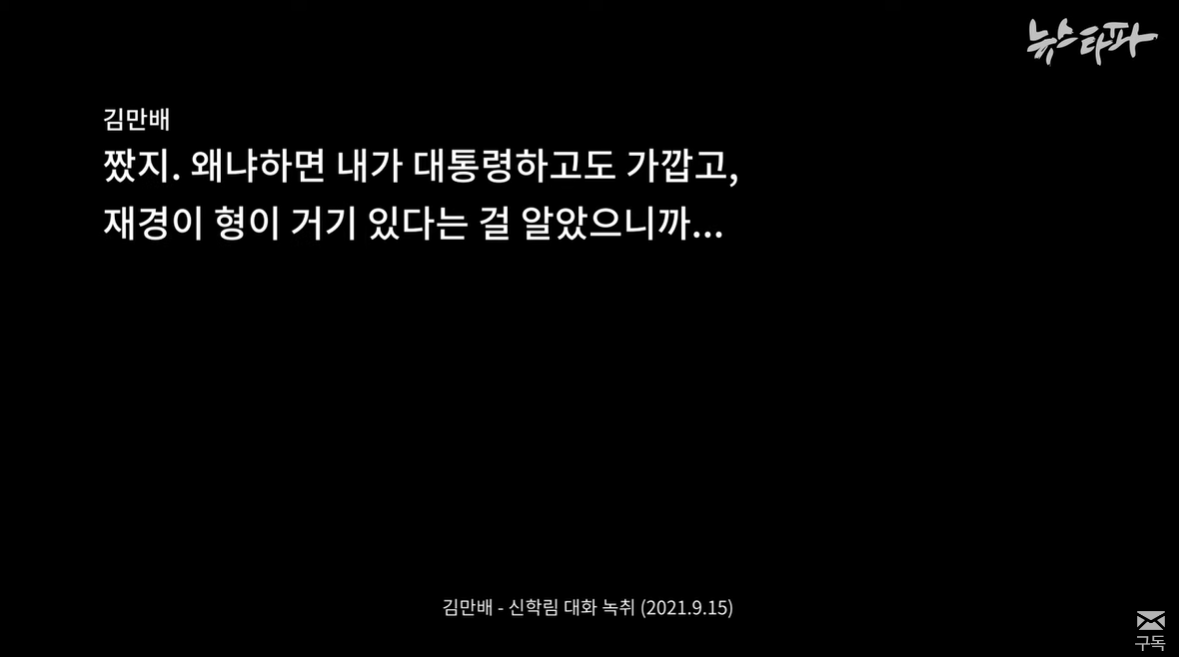 | 대장동 사건 본질은 무엇인가? [뉴스타파] '김만배-신학림 72분 대화' 음성파일 전체 공개 (1) | 2023.09.09 |