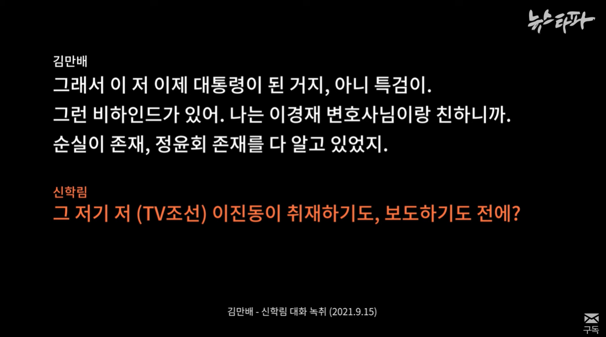| 대장동 사건 본질은 무엇인가? [뉴스타파] '김만배-신학림 72분 대화' 음성파일 전체 공개 (1) | 2023.09.09 |