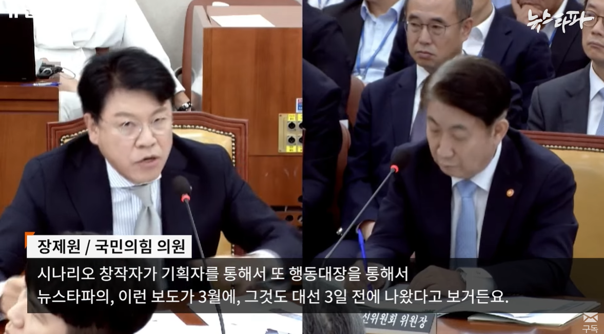 1) 장제원 "시나리오 창작자가 기획자를 통해서, 또 행동대장을 통해서, 뉴스타파의, 이런 보도가 (2022년) 3월에, 그것도 대선 3일 전에 나왔다고 보거든요.