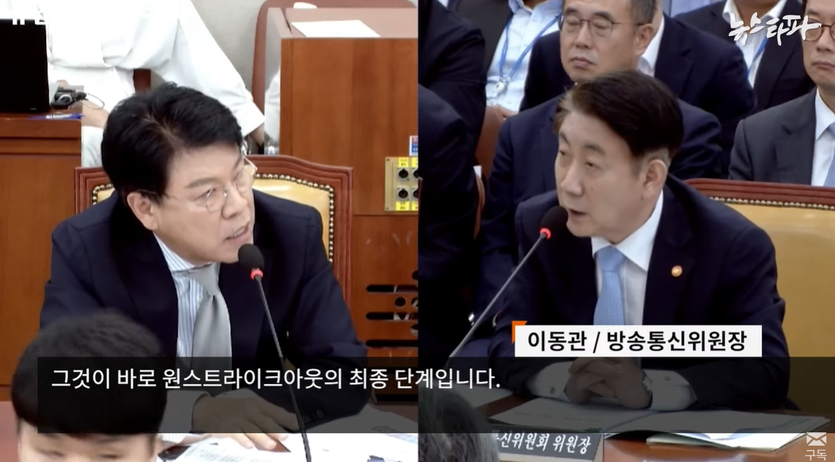 (이동관, 방송통신위원장 발언) 그것이 바로 원스트라이크 아웃의 최종 단계입니다.