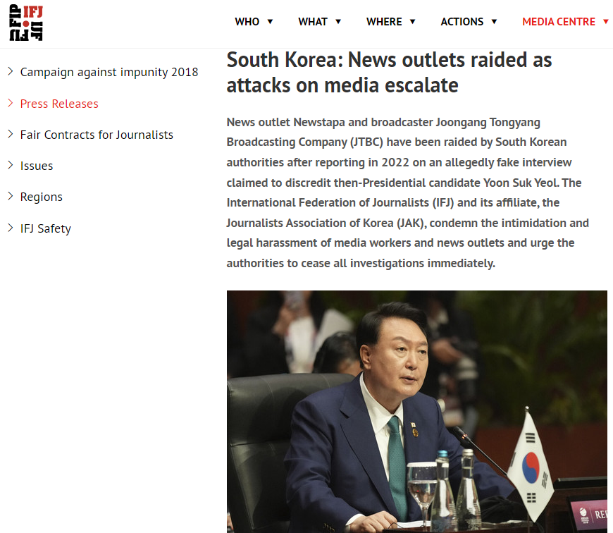 The IFJ said: “These raids and investigations against media outlets are the latest in a concerning trend of media rights violations led by the incumbent government in the Republic of Korea. The IFJ urges the prosecutors’ offices to withdraw all investigations against Newstapa, JTBC, and the outlets’ journalists, and calls on the People’s Power Party to ensure that press freedom is upheld and protected.”