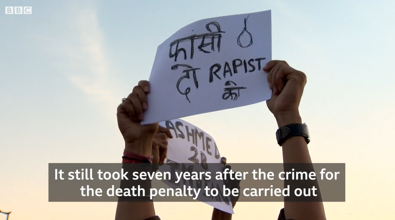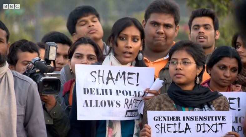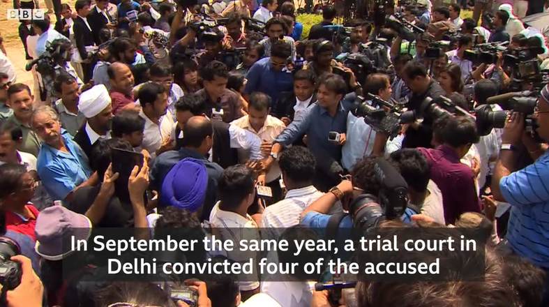 Public outrage over the crime mounted again in 2015 when the BBC broadcast a documentary called India's Daughter which included an interview with one of the convicts who blamed the victim for what happened to her.