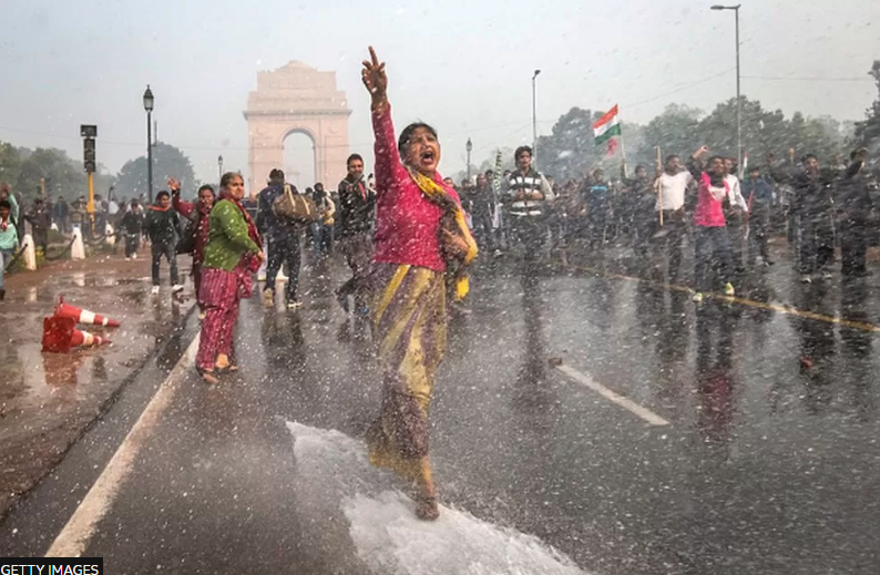 Thousands of furious protesters - mostly young women and men - still turned up at India Gate in the centre of the city, prompting police to use water cannons to disperse the crowds.