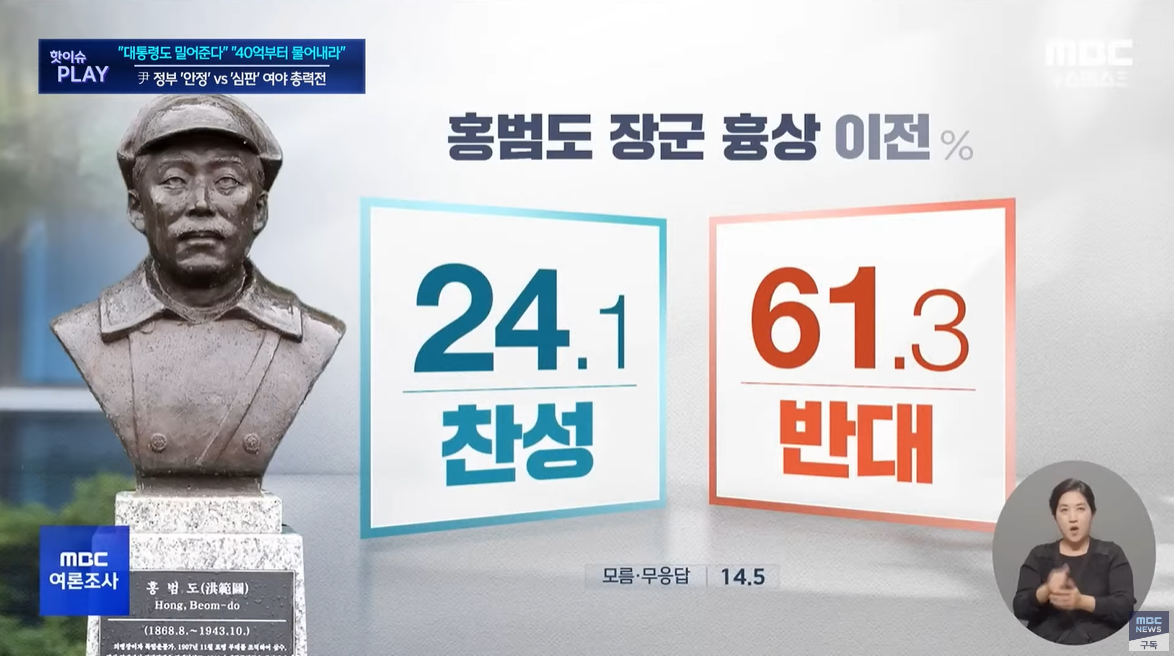 | 홍범도 장군 흉상 이전 반대 여론 58%, 찬성 26%. (0) | 2023.09.14 |