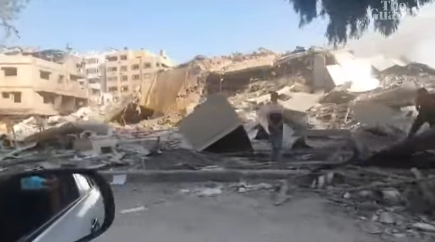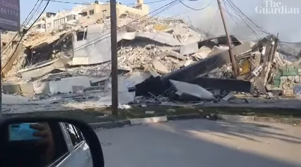 Mohammed Ghalayini films destruction in his neighbourhood after Israeli strikes – video