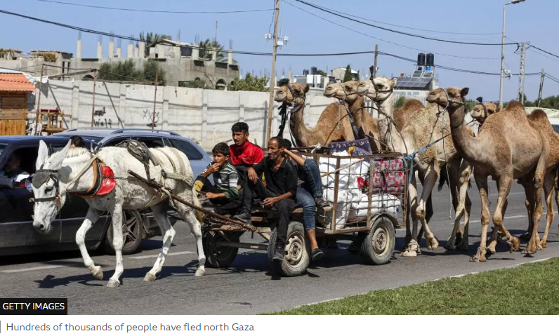 Hamas say 400,000 of the 1.1 million people who call northern Gaza home headed south down the Salah al-Din Road in the last 48 hours, following Israel's order to leave.