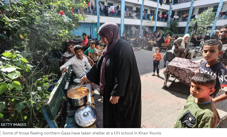 Some of those fleeing northern Gaza have taken shelter at a UN school in Khan Younis