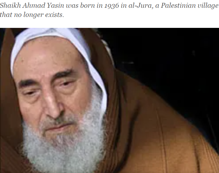 하마스 창립자. 무슬림 형제단의 영향를 받은,종교 지도자 샤이크 아메드 야신 (Sheikh Ahmad Yassin)