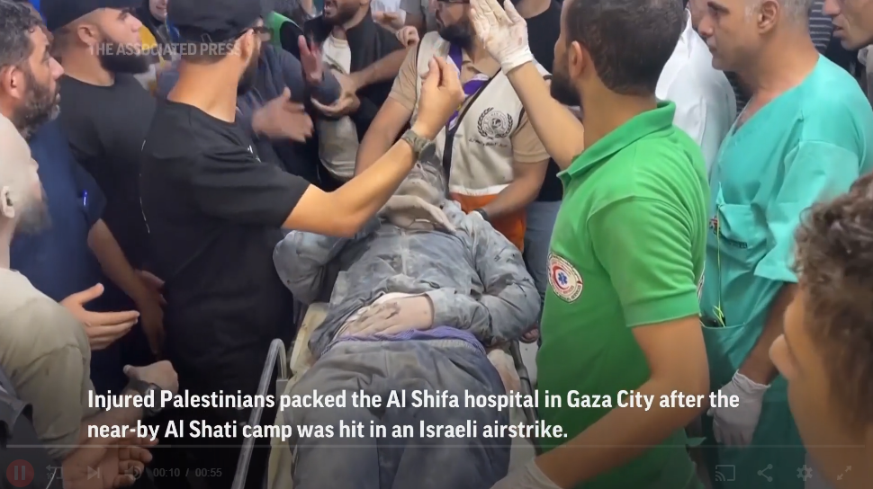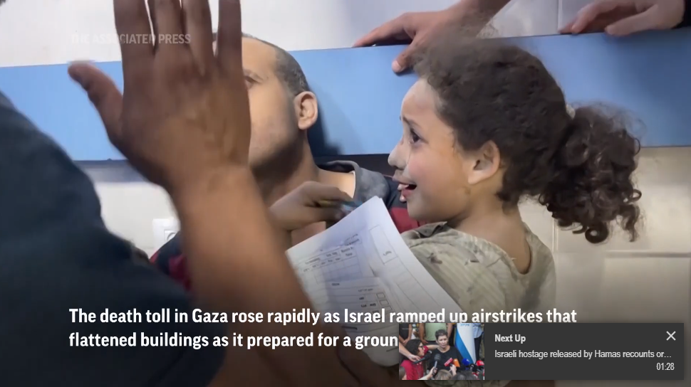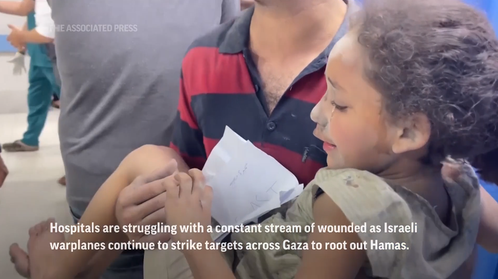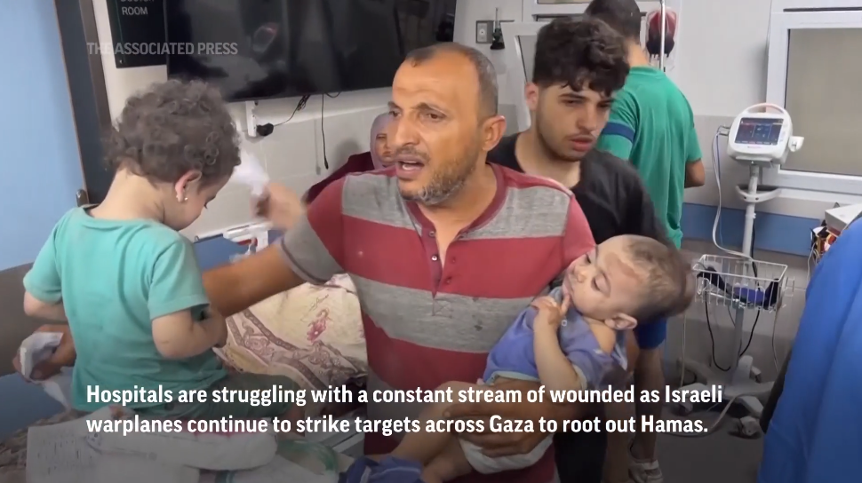 Graphic photos and video shot by The Associated Press showed rescuers digging with their hands to unearth small bodies from the ruins of collapsed homes and buildings across Gaza.