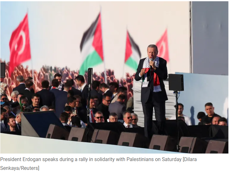 Turkish President Recep Tayyip Erdogan has addressed a massive pro-Palestinian rally in Istanbul.