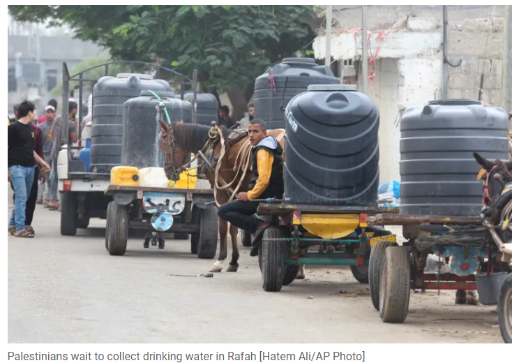 Palestinians wait to collect drinking water in Rafah [Hatem Ali/AP Photo]