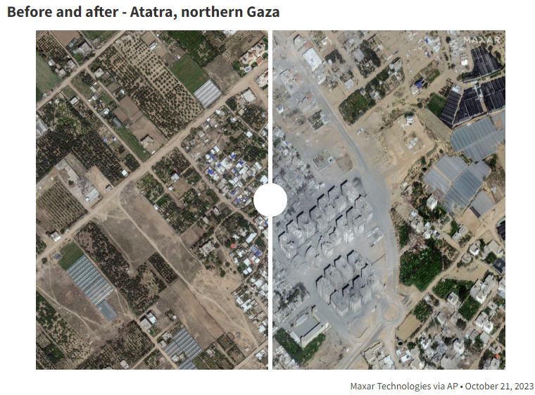 이스라엘군, 팔레스타인 가자 지구 20만 가구 파괴 : 폭격 전과 후 비교.