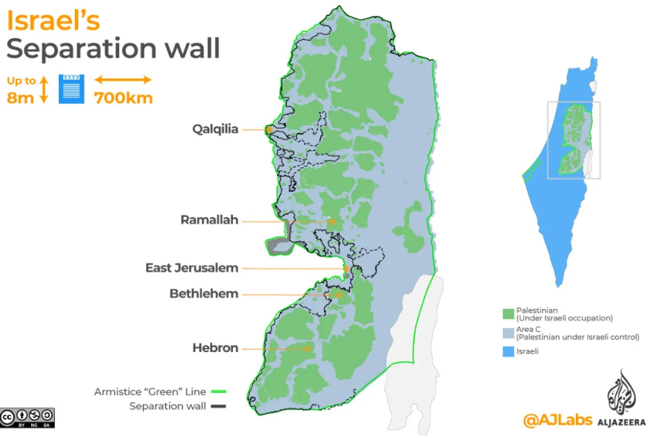 About 85 percent of the wall falls within the West Bank rather than running along the internationally recognised 1967 boundary, known as the Green Line. [Al Jazeera]