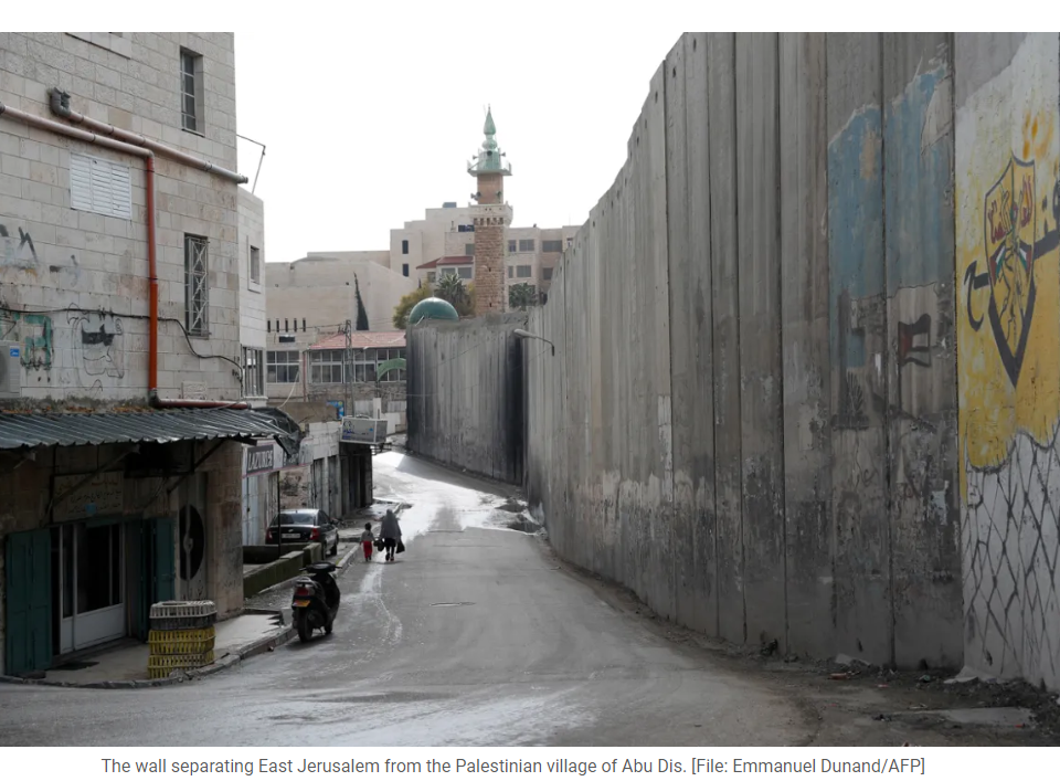 The wall separating East Jerusalem from the Palestinian village of Abu Dis. [File: Emmanuel Dunand/AFP]