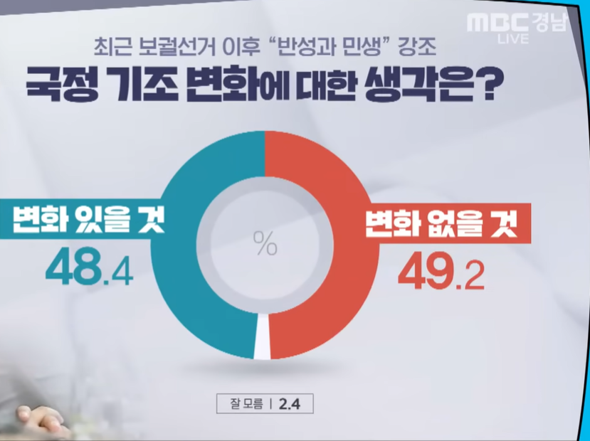 윤석열, '반성과 민생' 강조했으나, 경남도민들 변화 없을 것 49.2%, 변화 있을 것, 48.4%