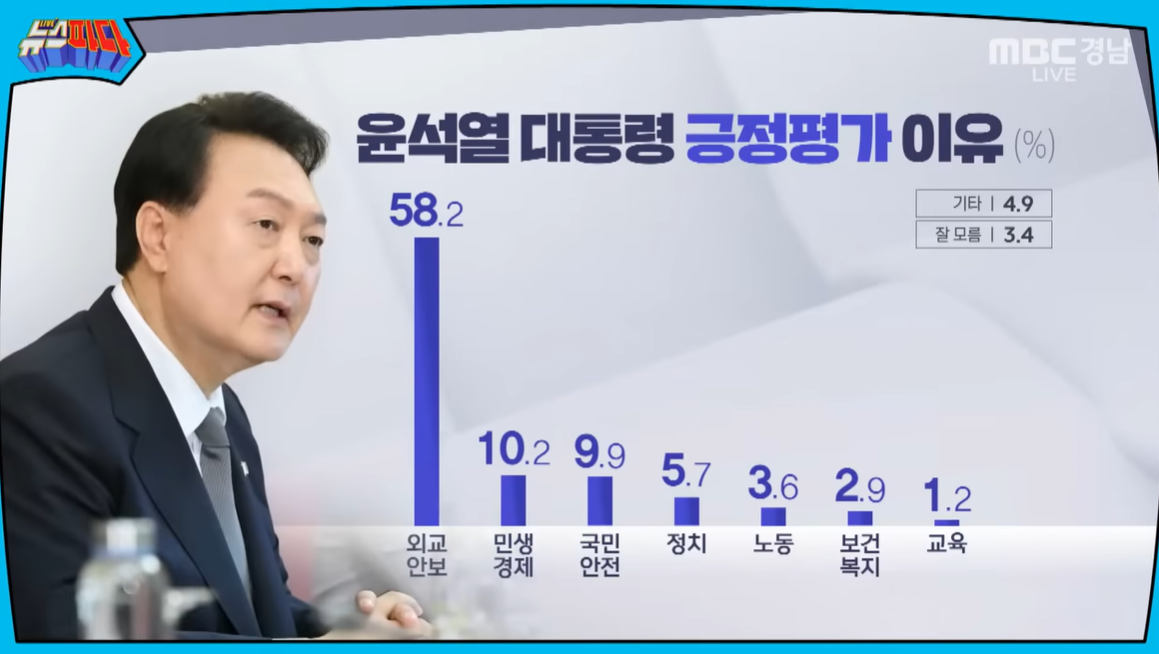 긍정 평가 이유. 외교 분야만 유일. 58.2%