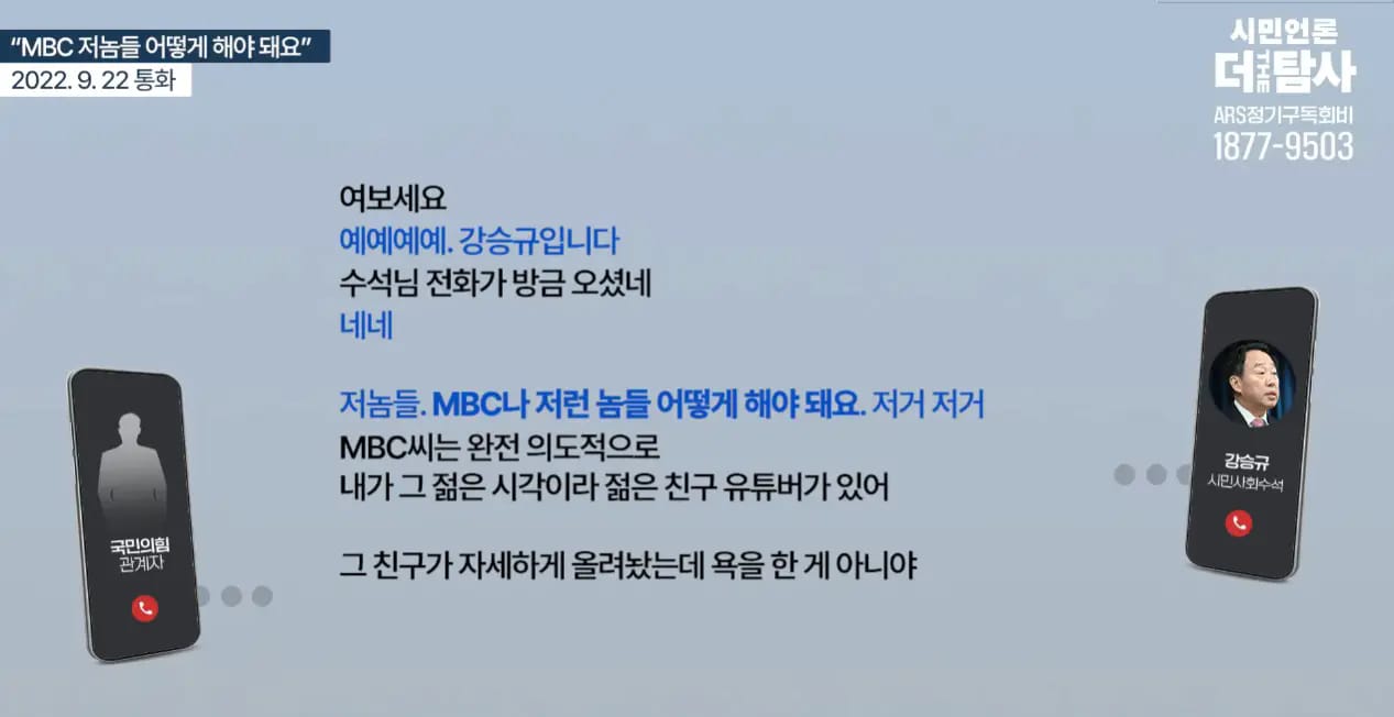 - 윤석열 강승규 시민사회수석, 'MBC앞에서 시위하라고 주변에 전하라'