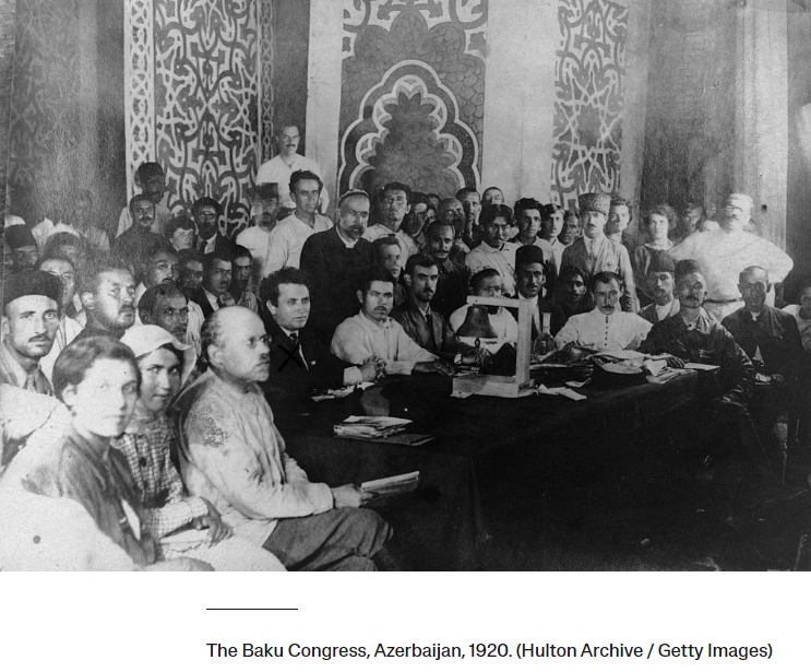 1921년 8월 15일. 바쿠 (Baku)에서 공산주의자 국제 회의가 열렸고, 무슬림 공산당들이 참여함.