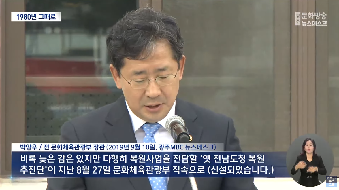 박양우 전 문체부 장관, 2019년 9월10일. 문체부 직속에, 옛 전남도청 복원 추진단.