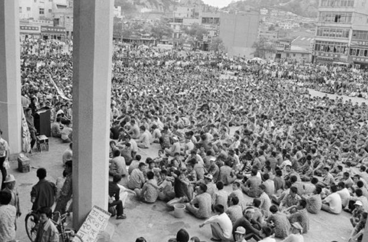 People gather in front of Mokpo Station in Mokpo, South Jeolla Province, May 24, 1980, in this photo taken by Norman Thorpe. (Culture Ministry)