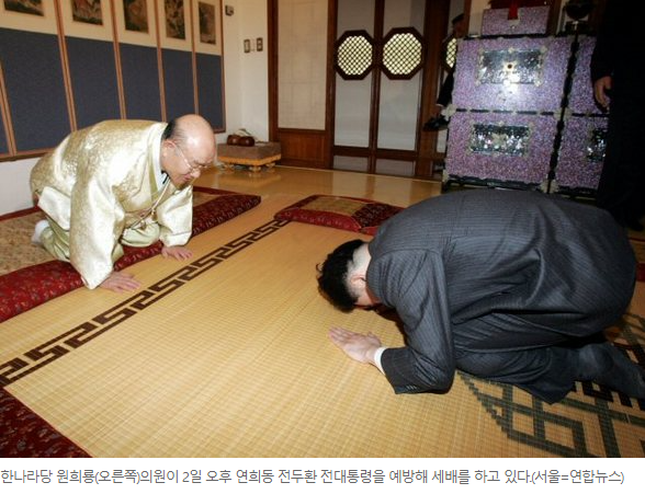 한나라당 원희룡 의원이 신년을 맞아 전두환 전 대통령의 자택을 방문해 큰절을 한 것과 관련, 과반이 넘는 국민들이 이를 두고 ‘적절치 못한 행동’ 이었다고 응답했다. 여론조사 전문기관 리얼미터(대표: 이택수)가 조사한 결과, 원희룡 의원의 행동이 ‘적절치 못했다’ 는 의견은 56.7%였으며, ‘전임 대통령에 대한 예우 차원에서 예의를 표한 것이므로 문제되지 않는다’ 는 의견은 30.9%에 그쳤다.