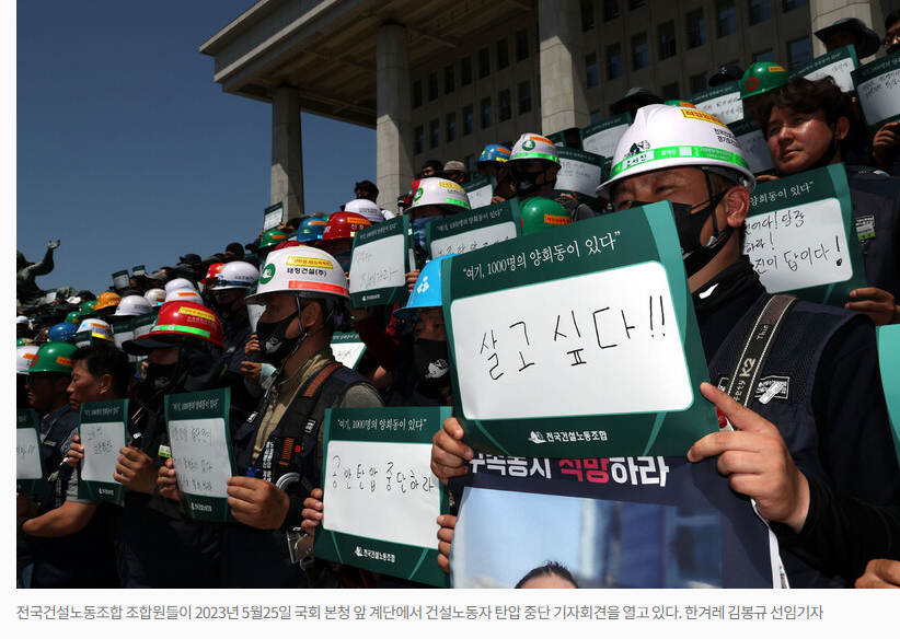 2023년 노동절에 건설 노동자가 분신했다