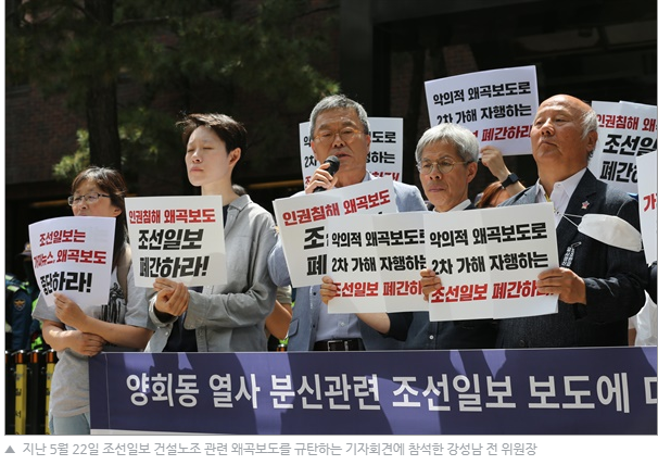 지난 5월 22일 조선일보 건설노조 관련 왜곡보도를 규탄하는 기자회견에 참석한 강성남 전 위원장