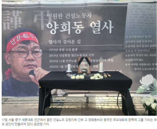 건설노동자를 위해 앞장서다 산화한 양회동 열사의 명복을 빕니다