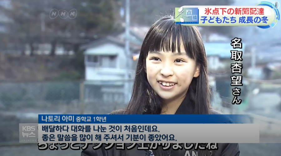 <녹취> 나토리 아미(중학교 1학년) : "배달하다 대화를 나눈 것이 처음인데요. 좋은 말씀을 많이 해 주셔서 기분이 좋았어요."