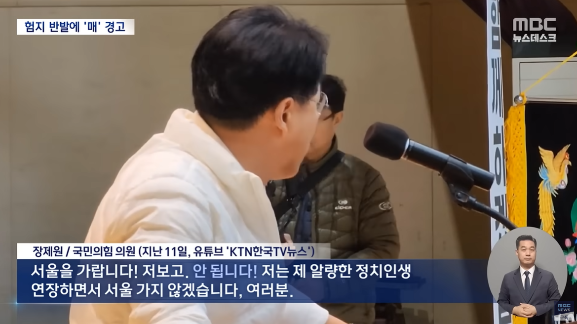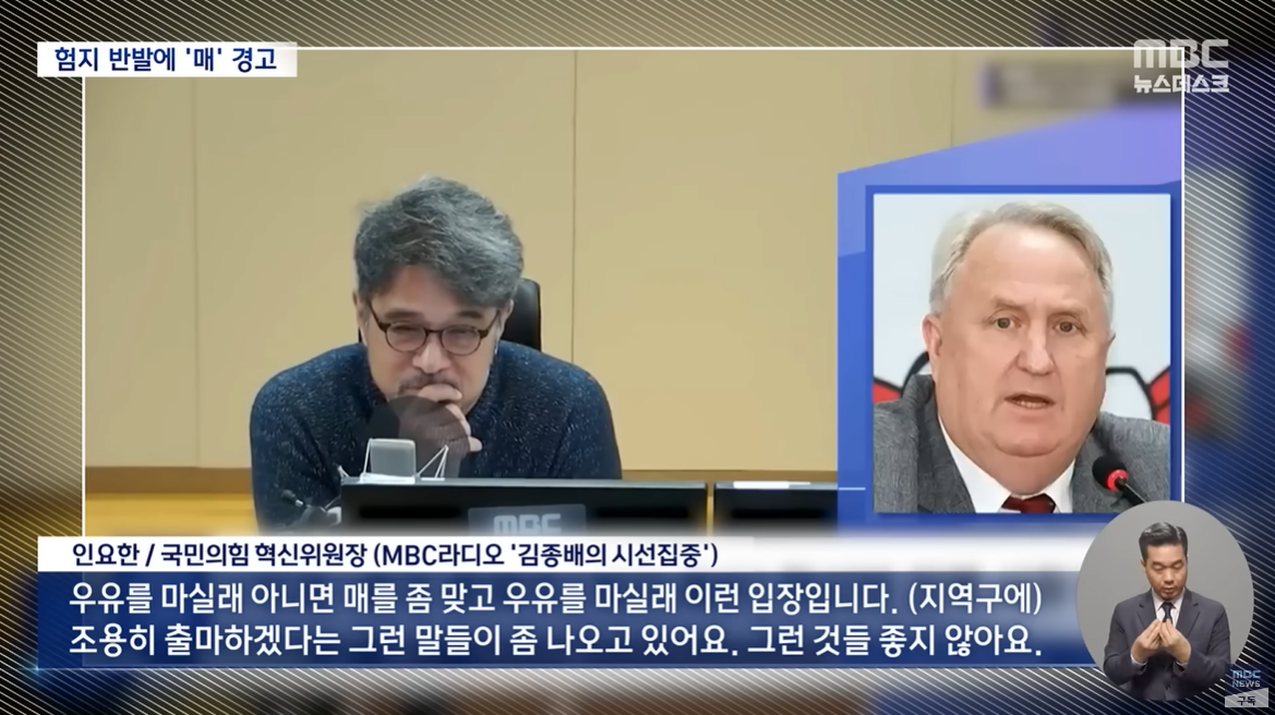 "우유를 마실래 아니면 매를 좀 맞고 우유를 마실래 이런 입장입니다. (지역구에) 조용히 출마하겠다는 그런 말들이 좀 나오고 있어요. 그런 것들 좋지 않아요."